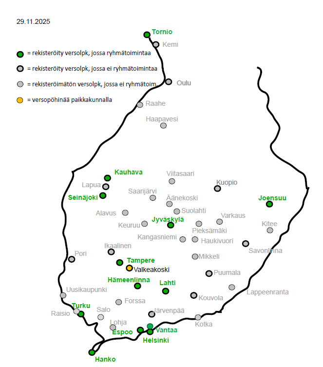 - Valkeakoskella toimivat ryhmät toimivat Tampereen Versojen ryhminä